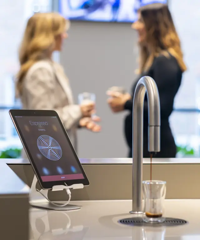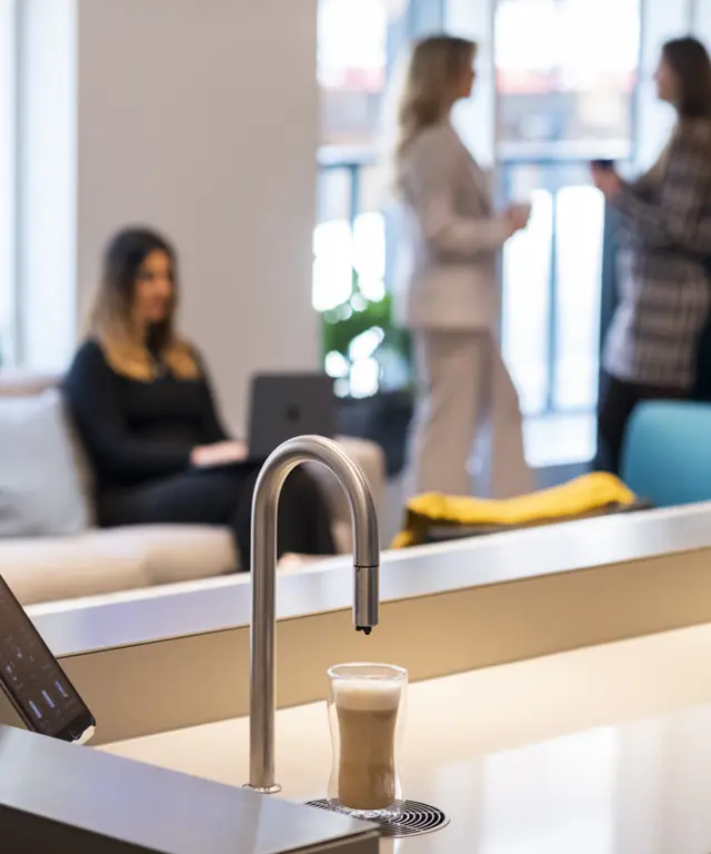 (Keep Your Employees Hydrated with TopBrewer) Discover the benefits of a streamlined commercial beverage solution - with TopBrewer you have one elegant tap for all hot and chilled drinks.